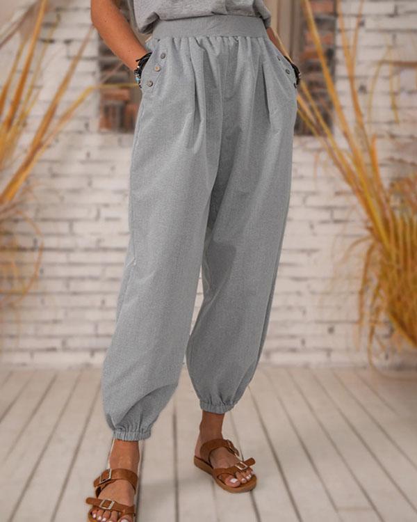 Casual Loose Linen Drawstring Elasticized Pants