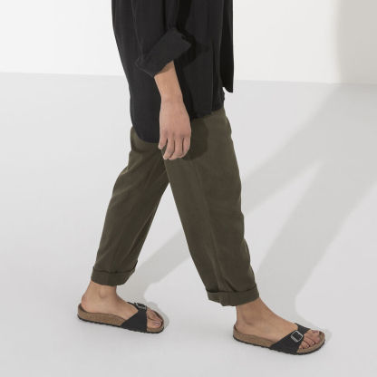 El modelo Madrid de BIRKENSTOCK es un auténtico clásico que triunfa en el mundo de la moda gracias a su diseño purista. La popular sandalia se presenta ahora con materiales actualizados y ya está disponible en versión vegana. No incluye ningún componente de origen animal, lo que está controlado por laboratorios independientes. El material superior está compuesto por Birko-Flor®, material sintético resistente y respetuoso con la piel, que se presenta aquí con un elegante aspecto de nubuc casi idéntico a la piel genuina, tanto en textura como en color.