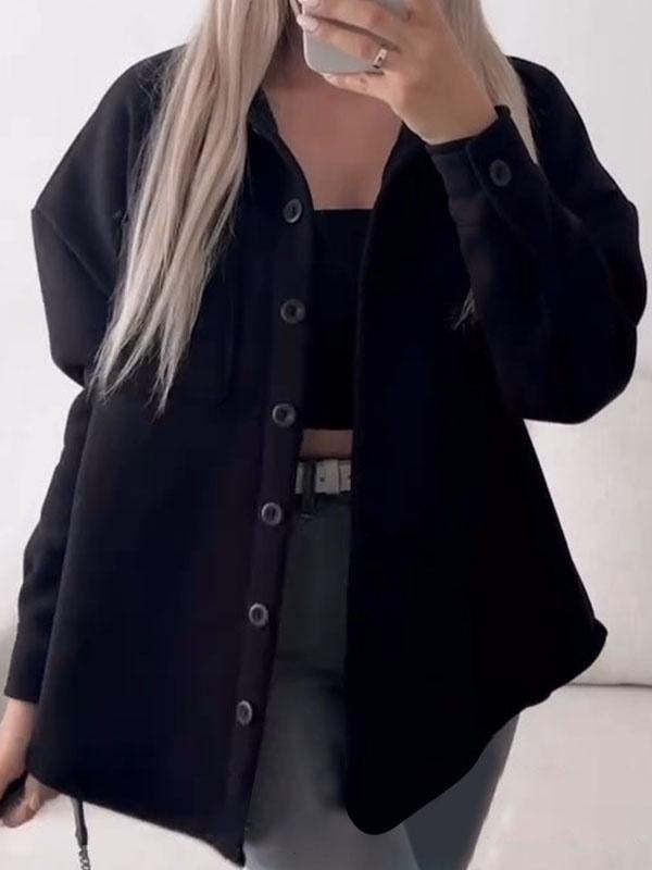 Women's Lapel Long Sleeve Buttoned Coat