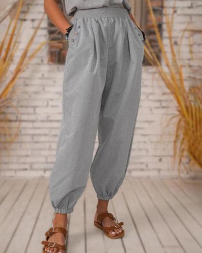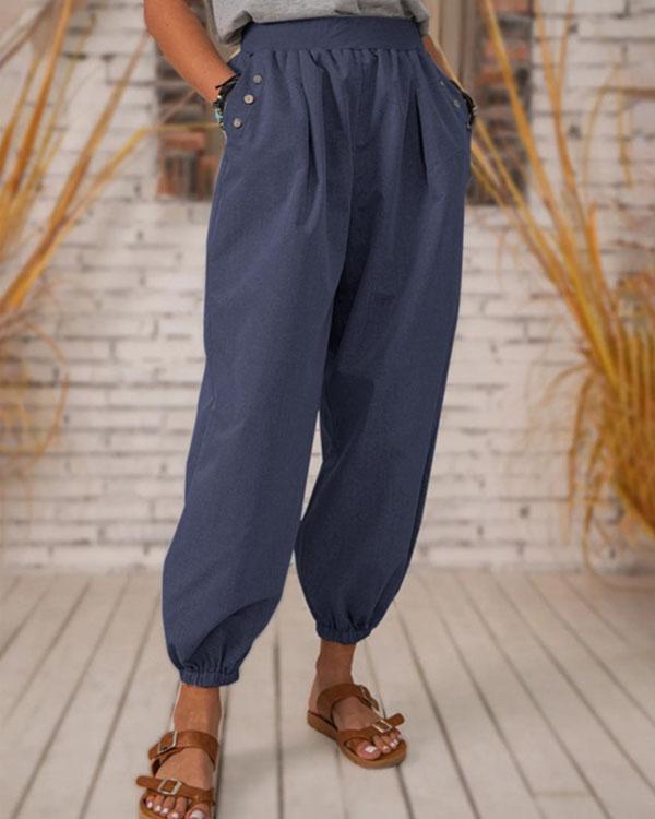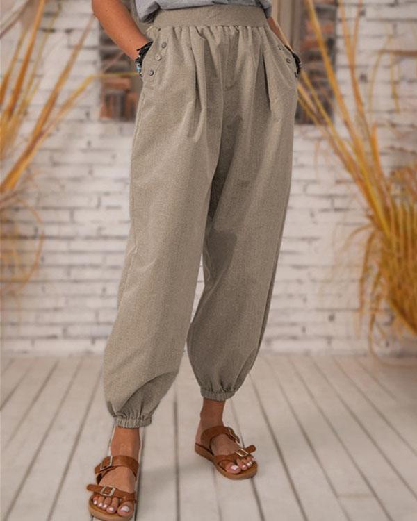 Vintage Solid Pocket Linen Trousers
